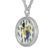 I chose gold plated so that the metal would not react with my skin oils and perspiration. But, I changed the necklace from the gold plated one to a sterling silver. My skin cells will tarnish the silver. But it will not look as bad if some portion of the gold plated necklace somehow became compromised. Zazzle did a find job turning the picture into a pendant for me. As you can see, the colors and the printing of the final product, match the preview. The picture I took is not very clear. But I am pleased with the product I received.