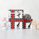 4 different silhouettes of cabaret style dancers printed inside of a light up frame with a red brick background on gift wrapping paper.