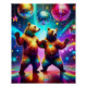 Dancing Bears At The Disco Poster Disco Balls Lighted Dance Floor Stars Lights Reflections