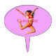 Black-haired red bikini-wearing girl leaps high dancing to customize, personalize by changing to your name