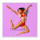 Black-haired red bikini-wearing girl leaps high dancing to customize, personalize by changing to your name