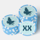 A simple, blue silhouette-like image of a lively raven (Corvus corax) done in Norse-Celtic style, superimposed on a snowy background image. Customize by adding th, e chip value, or other text, on the reverse side.
