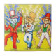 Tile featuring Louis Wain’s animal painting Three Cats Performing a Song and Dance Act (1860-1939). Three anthropomorphized cats wearing tuxedos and top hats dance and sing with their handkerchiefs and canes. A wonderful gift for cat lovers and English art.