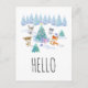 Dancing Christmas Forest Animals Watercolor Hello Postcard