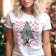 Add some playful holiday cheer to your wardrobe with this whimsical dancing Christmas tree design! Featuring a smiling tree adorned with ornaments and sneakers, this shirt brings fun energy to any festive gathering. The pink checkered background adds a trendy, retro vibe, making it a perfect pick for those who love to stand out. Whether you're heading to a Christmas party or spreading joy while out and about, this quirky and creative shirt will definitely bring smiles all around.