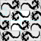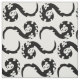 This elegant yet playful animal fabric design features an Asian motif abstract pattern of joyful dancing dragons in a simple color scheme of black and white.