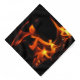 This bandana depicts the energy of fire in a wood burning stove. The orange, gold and yellow flames appear as joyful dancing characters. They are set off by a black background.