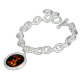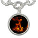 This charm bracelet depicts the energy of fire in a wood burning stove. The orange, gold and yellow flames appear as joyful dancing characters. They are set off by a black background.