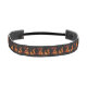 This headband depicts the energy of fire in a wood burning stove. The orange, gold and yellow flames appear as joyful dancing characters. They are set off by a black background.