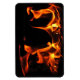 This flexible magnet depicts the energy of fire in a wood burning stove. The orange, gold and yellow flames appear as joyful dancing characters. They are set off by a black background.