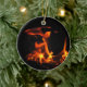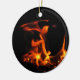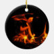 This holiday ornament depicts the energy of fire in a wood burning stove. The orange, gold and yellow flames appear as joyful dancing characters. They are set off by a black background. Great the Christmas or Halloween holidays, or any time of year.