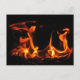 This postcard depicts the energy of fire in a wood burning stove. The orange, gold and yellow flames appear as joyful dancing characters. They are set off by a black background.