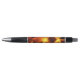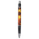 These grip pens depict the energy of fire in a wood burning stove. The orange, gold and yellow flames appear as joyful dancing characters. They are set off by a black background.