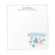 A notepad with a whimsical Christmas scene. Happy forest animals dancing around a decorated Christmas tree.