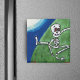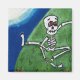 This image is from my original acrylic painting. The goofy, silly, funny skeleton is dancing in the moonlight by his pumpkins with a bat flying overhead. See my store Art by MAR for other products with this design.