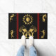 Southwestern Sun and Dancing Gold Kokopelli Rug Doormat Vivid color combination that you can customize background colors to match your decor. Kokopelli - Native American Indian cultures. Attributed to ancient aliens or tribal art and inspired by cave and rock drawings. Customize your Southwestern Style Native American door mat rug colors and styles. Great gift idea. Note The gold Kokopellis are not actual gold metallic. No metallic will be used in this design.