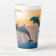 Dancing in the Dusk: Three Dolphins Leaping Latte Mug