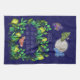 Whimsical brightly colored moths flitting in the moonlight in a calendar towel to brighten your kitchen