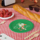 These are cute paper plates for St. Patrick's Day or for any Irish celebration. They feature a leprechaun in green and orange who is dancing a jig. Beside him is a green, white, and orange flag with the text IRISH across it. Scattered green shamrocks complete the image, which is placed on a bright green background. Festive and colorful! Be sure to see the matching paper napkins in our store. *Clip art used in this design is copyrighted by Encore Software, Inc., which permits use to its licensors. All rights reserved.