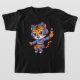 Vibrant cartoon tiger with neon headphones dancing, a pink heart fluttering nearby. Bold colors and playful vibe suit kids wear and music-themed apparel.