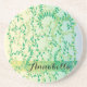 I'm not sure how much moisture these will soak up, haven't had a chance to try them out, but they look good and I like the cork backing. The printing is fine ~ and really looks cool with an artisan's hand made "Hurricane Martini" glass sitting on top of my painting (on the coaster) in my studio.