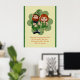 This charming poster features a dancing leprecaun couple with a green and gold four-leafed clover and a wee Irish blessing.