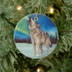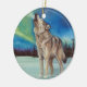 A lonely wolf is howling under the colorful northern lights. From "Dancing Lights", Morgane's original acrylic painting. For all animal lovers.