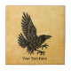 A simple silhouette-like image of a lively raven (Corvus corax, done in Norse/Celtic style, superimposed on an old paper background image, giving it a medieval feel. Customize by adding your own text.