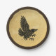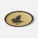 A simple silhouette-like image of a lively raven (Corvus corax, done in Norse/Celtic style, superimposed on an old paper background image, giving it a medieval feel.