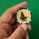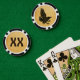 A simple silhouette-like image of a lively raven (Corvus corax, done in Norse/Celtic style, in a circle, superimposed on an old paper background image, giving it a medieval feel. Customize by adding th, e chip value, or other text, on the reverse side.