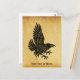 A simple silhouette-like image of a lively raven (Corvus corax, done in Norse/Celtic style, superimposed on an old paper background image, giving it a medieval feel. Customize by adding your own text.