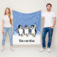 Dancing Penguins Design Fleece Blanket with customizable background color and text.