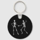 A pair of dancing skeletons try out some retro moves on this cool keychain.