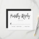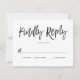The front of the card futures charcoal black script lettering or a plain white backdrop. The reverse side of the card features a solid black to complement the front.
