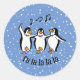 Dancing Singing Penguins Design Sticker on a snowy background, with customizable text and color.