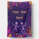 Bring playful Halloween magic to your yard with this Dancing Skeletons design! Two cheerful skeletons groove under a canopy of colorful autumn leaves and whimsical florals in vivid purples, oranges, yellows, and pinks. The deep navy background makes the bright hues pop, creating a festive yet slightly spooky vibe that’s perfect for the season. You can add your own text - your family's name, a spooky saying, or anything else you can think of!