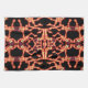Fun Halloween dancing skeletons with top hats and canes pop like neon off the black background for a spooktacular accessory for your kitchen!