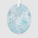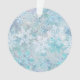 Snowflakes acrylic Christmas ornament features a digital graphic of snowflakes that look as if their dancing in a storm, colored in mostly shades of blue and white.