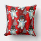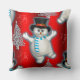 This cute red Christmas throw pillow will be sure to add a colorful and festive touch to your holiday decor this Christmas. The design features a whimsical, dancing snowman with top hat and striped scarf, surrounded by silver Christmas trees and snow on a red background. The other side features a smaller pattern of snowmen for a bit of variety, so you can flip it over whenever you feel like a change.
