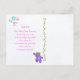 A purple teddy bear princess dressed up in a lovely yellow jeweled crown and pink, blue and green flowers is dancing through the flowers and holding a bunch of colorful balloons with the word HAPPY on them. This happy birthday postcard will bring a smile to a special girl on her 5th birthday. Personalize with her name to make it extra special. Original design by Anura Design Studio.