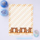 Happy brown teddy bears wearing orange bows dancing across happy days keepsake scrapbook pages with a background of orange twirls. This colorful orange and brown design with teddys capering on an orange dance floor can be chucked full of a little boys memories to use with matching keepsake binders. Original design by Anura Design Studio.