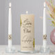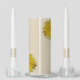 Custom create your own personalized unity candle set for a beautiful addition to your wedding ceremony. Two Shall Become One. Add your monogram initial, the Bride & Groom's names and wedding date to the central candle with dandelion accents, then add first initials to the two pillar candles. The soft color scheme of gentle beige and chocolaty brown text in mixed fonts is accented by the sunny yellow of my photo-realistic blooms on either side of the larger candle. From a country wedding to a sophisticated backyard garden celebration, this unity candle set will be a keepsake to remember your special day.
