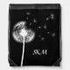 A fluffy dandelion on a black background decorates this drawstring backpack. It is easy to personalize with your monogram, name, sport or dance.