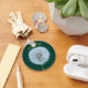 This keychain or keyring is ready to be personalized with a name or other text. It features a photo of a dandelion flower (okay, technically a weed) or dandelion clock set against a dark green background. Your name is above in lime green lettering.