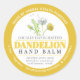 Personalized dandelion botanical watercolor art ingredients small round sticker label for salve tins or small balm containers. Great for homemade healing salve and multi use balms that contain dandelion root, leaves or flower infusions to be labelled for direct retail or to be sold on market stalls so they look professional. Original dandelion flower and seed head hand pencil and watercolor art and design by Sarah Trett for www.mylittleeden.com
