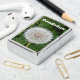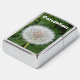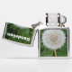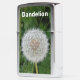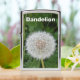 The design is a photograph of a dandelion head that has gone to seed. The spherical seedhead (sometimes referred to as a clock or blowball) still has all of its achenes (seeds with their fuzzy "parachutes"). The dandelion (Taraxacum Officinale) is an interesting herb, flower, or weed depending on your point of view. It has many medicinal properties and edible uses. It is a beautiful yellow flower and many of us have enjoyed picking up one of these seed heads and gently blowing off the seeds to watch them drift across the yard. In addition to the photo, a white-lettered text template is included for you to personalize.