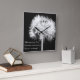 This macro photograph features an elegant dandelion flower. This photo was taken in a field with a black background placed behind the flower. The fluffy white seed pods really pop off of the background. You can see so much detail in this beautiful flower. My poet friend, Michelle Balletto-Wooten, was inspired by this dandelion photo to write a poem in the form of Haiga. Haiga is the poem on its own and Haiku is when the poem is paired with a picture. The poetry is written in white, elegant script. The poem reads "White wisp of joy dance/ Dandelion announcement/ Spring is on her way."