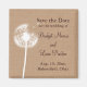 This is the coordinating Save the Date for the Dandelion on Burlap wedding collection. It is decorated with a fluffy dandelion in bloom, suggesting magical wishes.