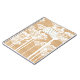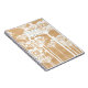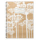 Fun and retro personalized notebook featuring white dandelion pattern on wood background.