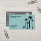 A stylish modern business/profile card with an simple but attractive arrangement of dandelion clocks. Company and address details on the front with name and other contact details on the back.